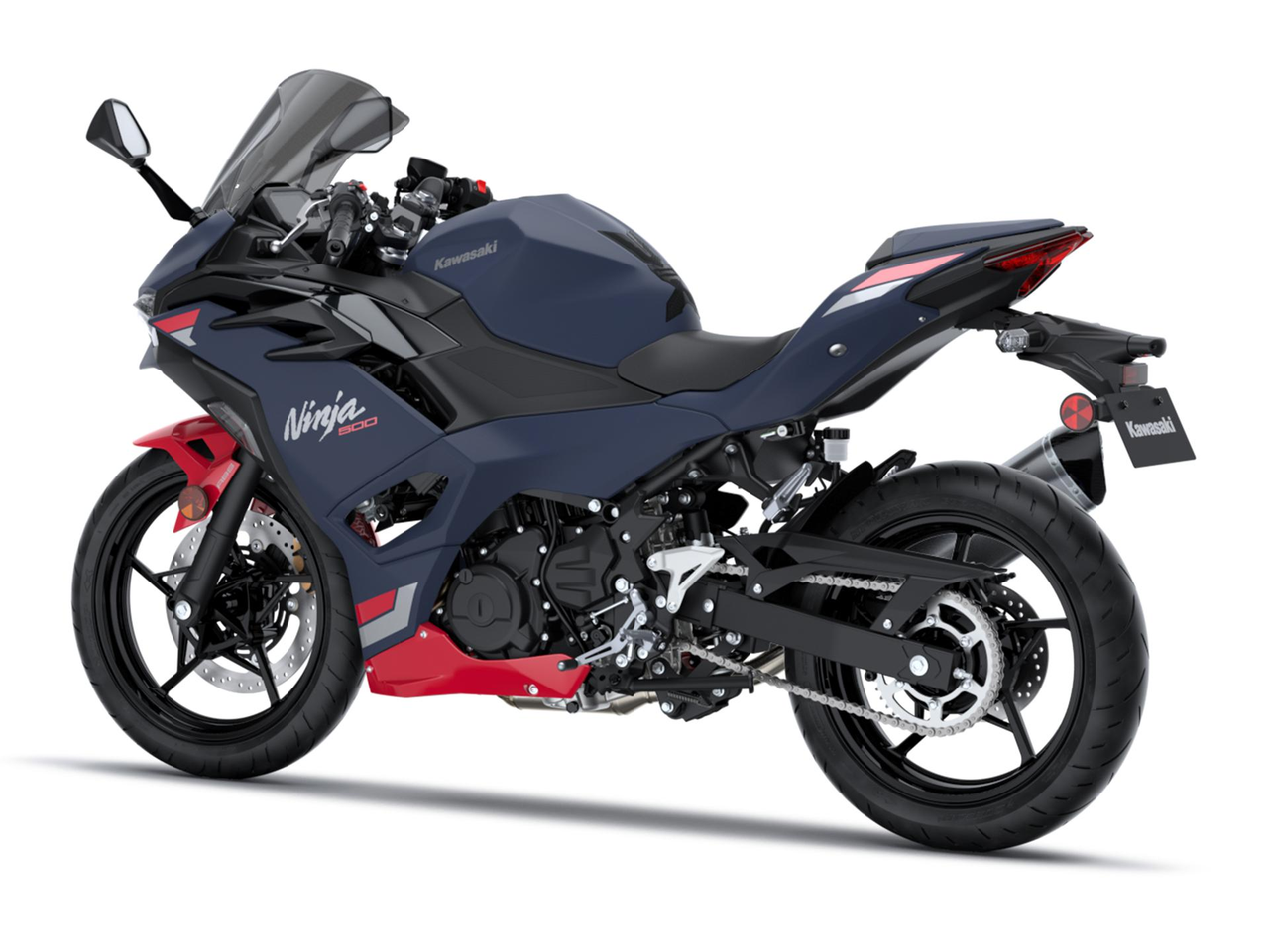 Der Gitterrohrrahmen der Ninja 500 ähnelt dem Design der Ninja H2. Die fortschrittliche, dynamische Steifigkeitsanalyse von Kawasaki wurde verwendet, um optimale Steifigkeit bei geringem Gewicht sicherzustellen. Der Motor ist starr montiert und dient als tragendes Bauteil. Das Rahmendesign trägt wesentlich zur geringen Leermasse des Motorrades bei.