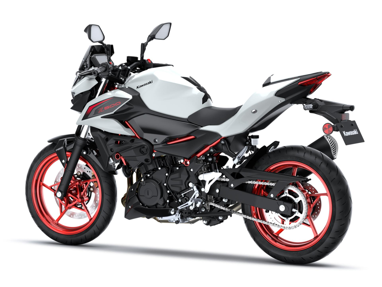 Der Gitterrohrrahmen der Z500 ähnelt dem Design der Ninja H2. Die fortschrittliche, dynamische Steifigkeitsanalyse von Kawasaki wurde verwendet, um optimale Steifigkeit bei geringem Gewicht sicherzustellen. Der Motor ist starr montiert und dient als tragendes Bauteil. Das Rahmendesign trägt wesentlich zur geringen Leermasse des Motorrades bei.