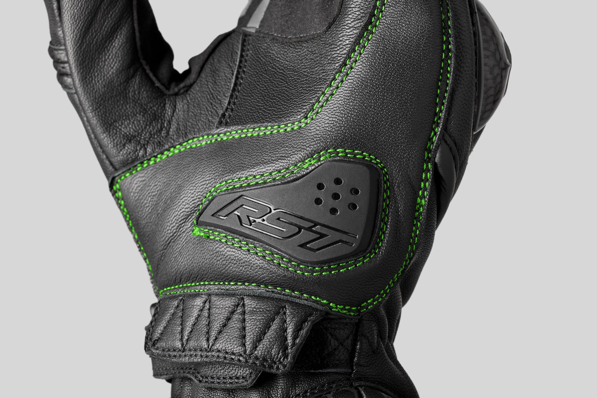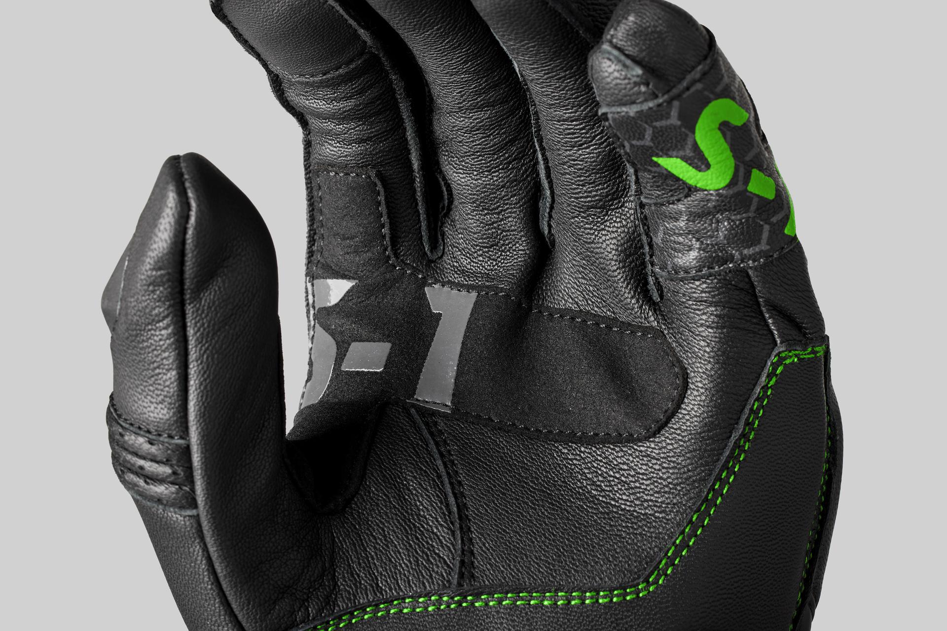 Mit beweglichen Carbon-Knöcheln, abgesteppten Fingern, viel Stretch und Bewegungseinsätzen.