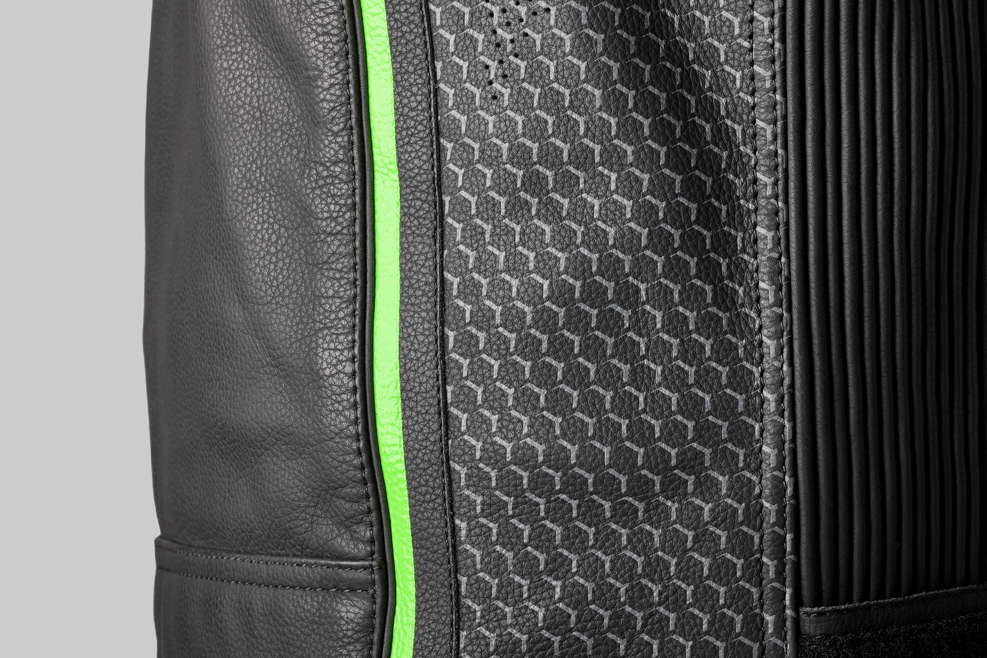 Hochdichte, perforierte Einsätze und ein herausnehmbares, vollflächiges Thermofutter sorgen für Klimaregulierung im Inneren, während das Außenmaterial aus vollnarbigem Leder eine hervorragende Abrieb- und Reißfestigkeit bietet.