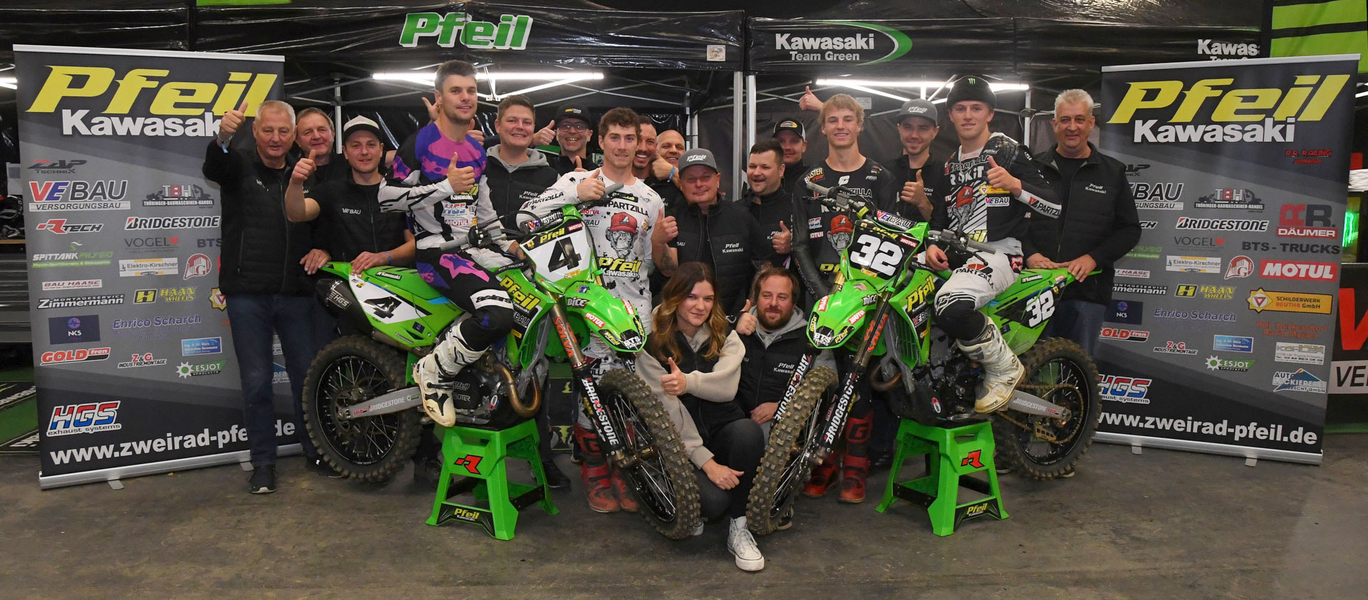 Mit dem nun schon 41. ADAC Supercross Stuttgart trat der ADAC Württemberg in die nächste Dekade seiner Traditionsveranstaltung ein. Mittendrin im Geschehen war natürlich wieder Kawasaki, vertreten durch das Team Kawasaki Motul Pfeil aus dem thüringischen Dreitzsch. In den beiden Haupt-Klassen SX1 und SX2 schickte man je zwei Fahrer in die Rennen.
