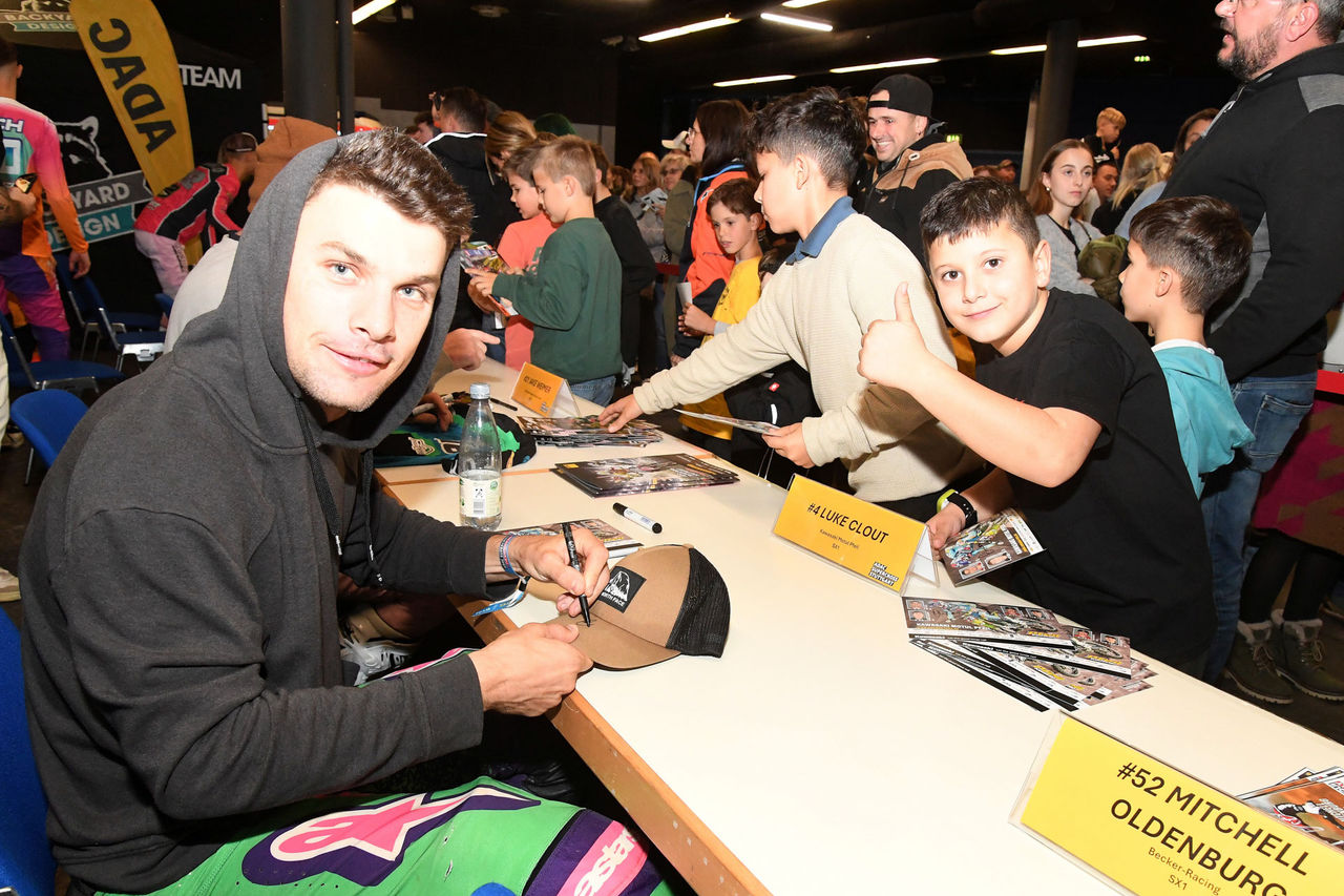 Am ersten Abend sprang Luke Clout als Zweiter über den Zielhügel und wiederholte dieses Kunststück knapp 24 Stunden später. Zwar musste sich der noch bis zum 12. November 30-jährige „Aussie“ in der Gesamtwertung beider Tage hinter den zwei Tagessiegern Mitchell Oldenburg (USA, Freitag) und Cedric Soubeyras (FRA, Samstag) mit dem dritten Rang in der Gesamtwertung beider Tage sowie auch in der Meisterschaftstabelle (nur einen Punkt hinter Soubeyras und Oldenburg) begnügen, war aber trotzdem überaus zufrieden. So sagte er anschließend: „Ich hatte eine wirklich gute Zeit hier in Deutschland. Das Racing ist komplett anders als bei uns in Australien. Die Strecke war viel enger, und die Erde komplett anders. Dazu waren das Bike und das Team für mich neu. Aber wir hatten gutes Racing und an beiden Abenden auf dem Podest zu stehen, ist nicht so schlecht. Ich habe nun eine gute Ausgangsposition für die Meisterschaft und freue mich auf Dortmund.“