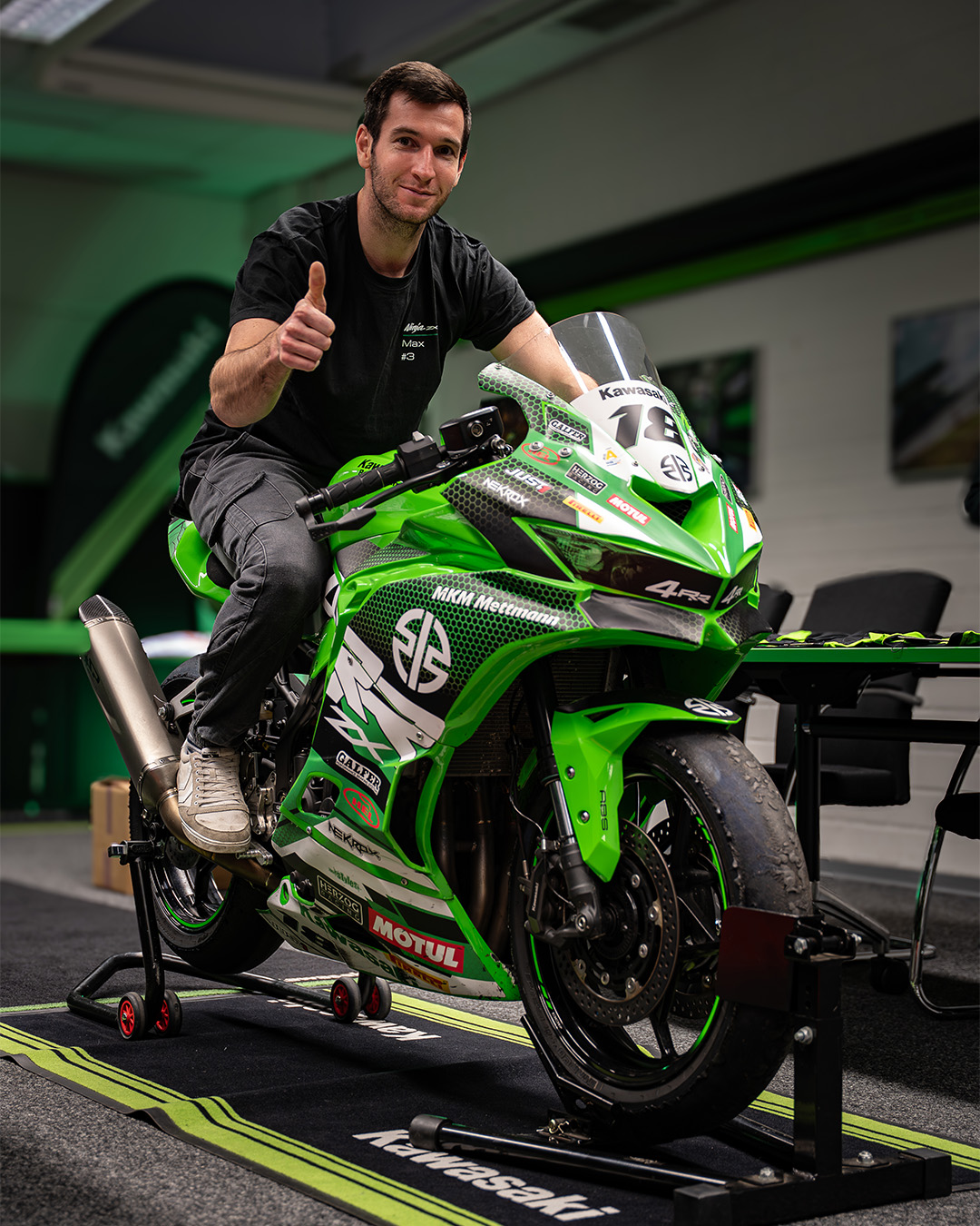 Die Übergabe der Cup-Bikes erfolgte in vollständig vorbereitetem Renntrimm. Sowohl die Kawasaki Ninja ZX-4RR als auch die Ninja ZX-6R wurden in rennfertigem Zustand übergeben – bereit für Testeinsätze und den ersten gemeinsamen Roll-out.