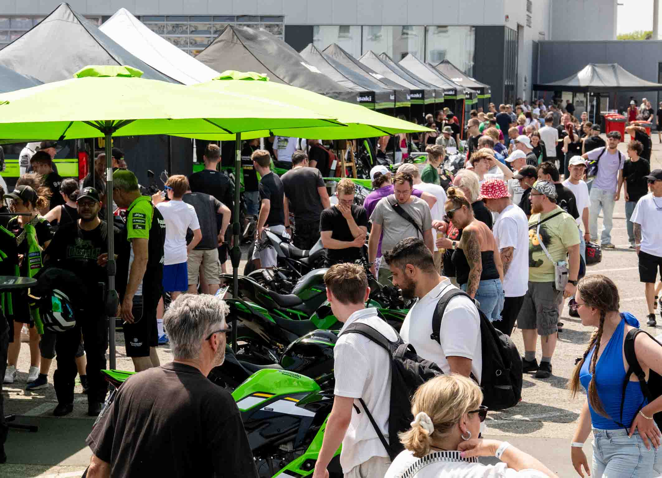 Darüber hinaus lädt eine große Händler- und Zubehörmeile mit zahlreichen Ausstellern zum Entdecken ein. Hier treffen Innovation, Individualisierung und Szene aufeinander – von neuesten Modellen über Custom-Bikes bis hin zu hochwertigem Zubehör. Dabei sind ausdrücklich alle Marken willkommen: Die Kawasaki Days verstehen sich als offenes, grünes Fest für die gesamte Motorrad-Community. Menschen, Maschinen und Emotionen verschmelzen zu einer einzigartigen Atmosphäre, die die Kawasaki Days Jahr für Jahr so besonders macht.