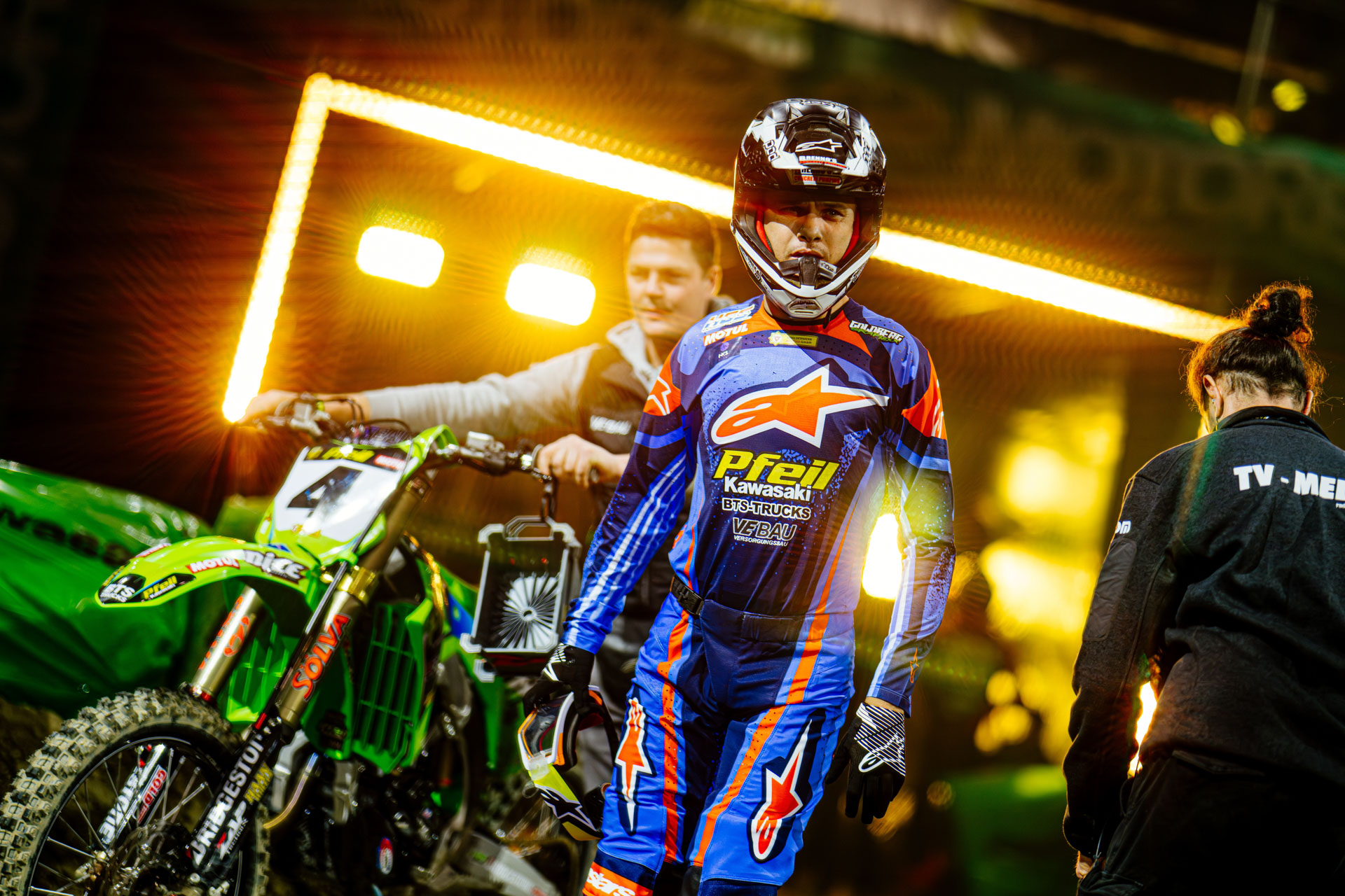 In der „kleinen“ Supercross-Klasse SX2 trat das Team Kawasaki Motul Pfeil nach verletzungsbedingten Absagen mit zwei neuen Piloten an. Während für den erst 17-jährigen Franzosen Basile Pigois die Trauben noch zu hoch hingen, kam der fünf Jahre ältere US-Amerikaner Gage Linville von Tag zu Tag besser in Schwung. Am ersten Abend verpasste er noch den Einzug ins Finale, doch am Samstag, der „Nacht der Fans“, stürmte er trotz suboptimaler Ausgangslage mit der ihm anvertrauten Kawasaki KX250 auf Rang drei und stand somit anschließend auf dem Podest.