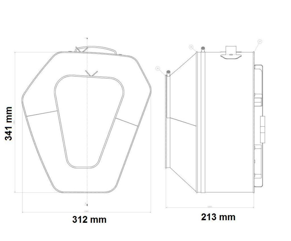 - L = 312 mm / B = 213 mm / H = 341 mm (pro Seite).