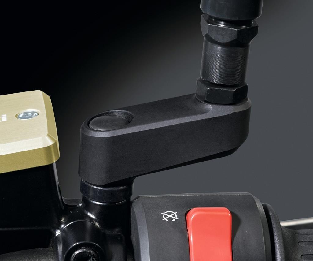 Verlängert Spiegel auf beiden Seiten um 40 mm. CNC-gefertigt. Eloxiertes Aluminium.